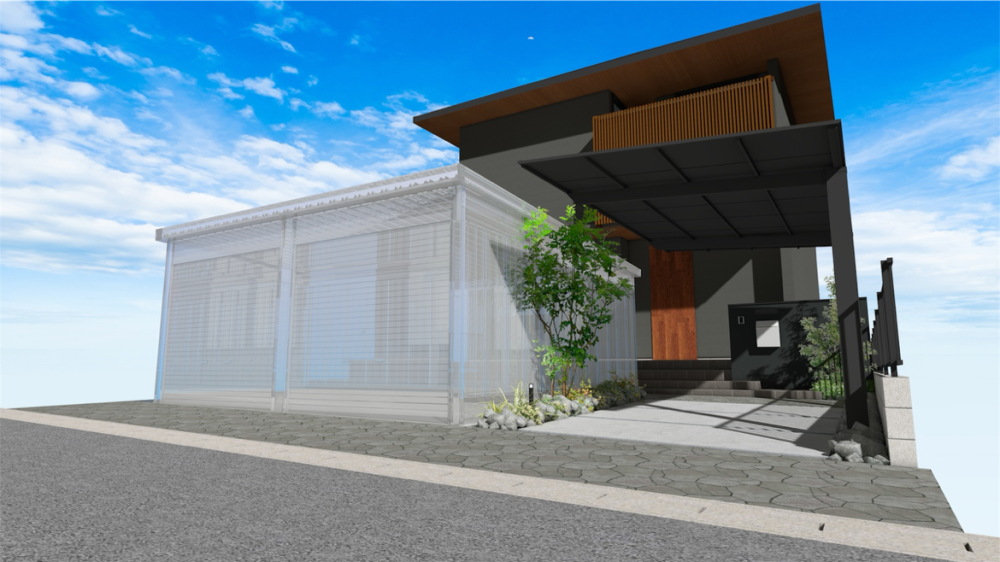 目隠しフェンスと建物屋根を似た色で提案することによって・・・ -