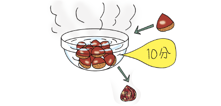 1)沸騰したお湯に鬼皮をむいた栗をいれる。