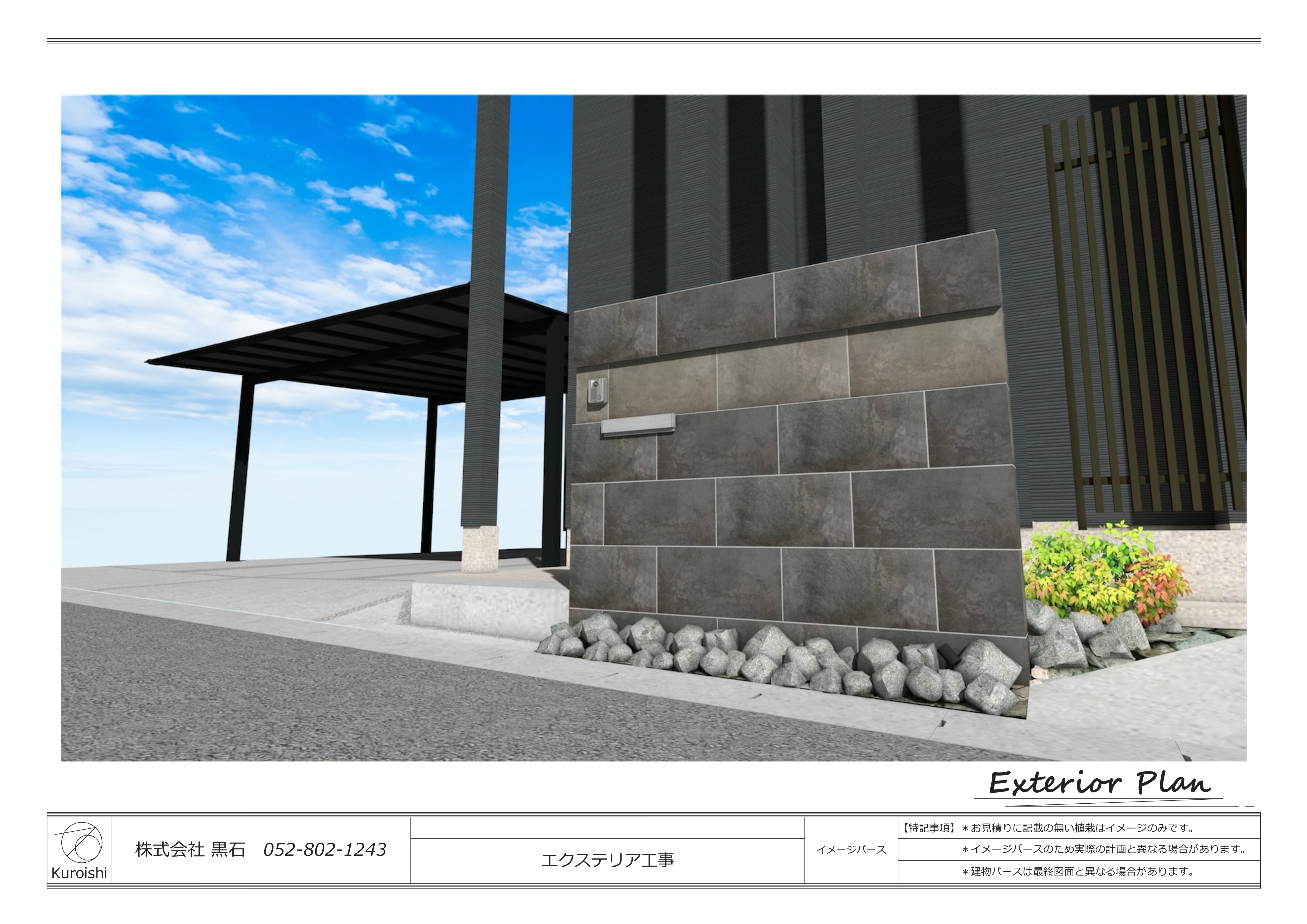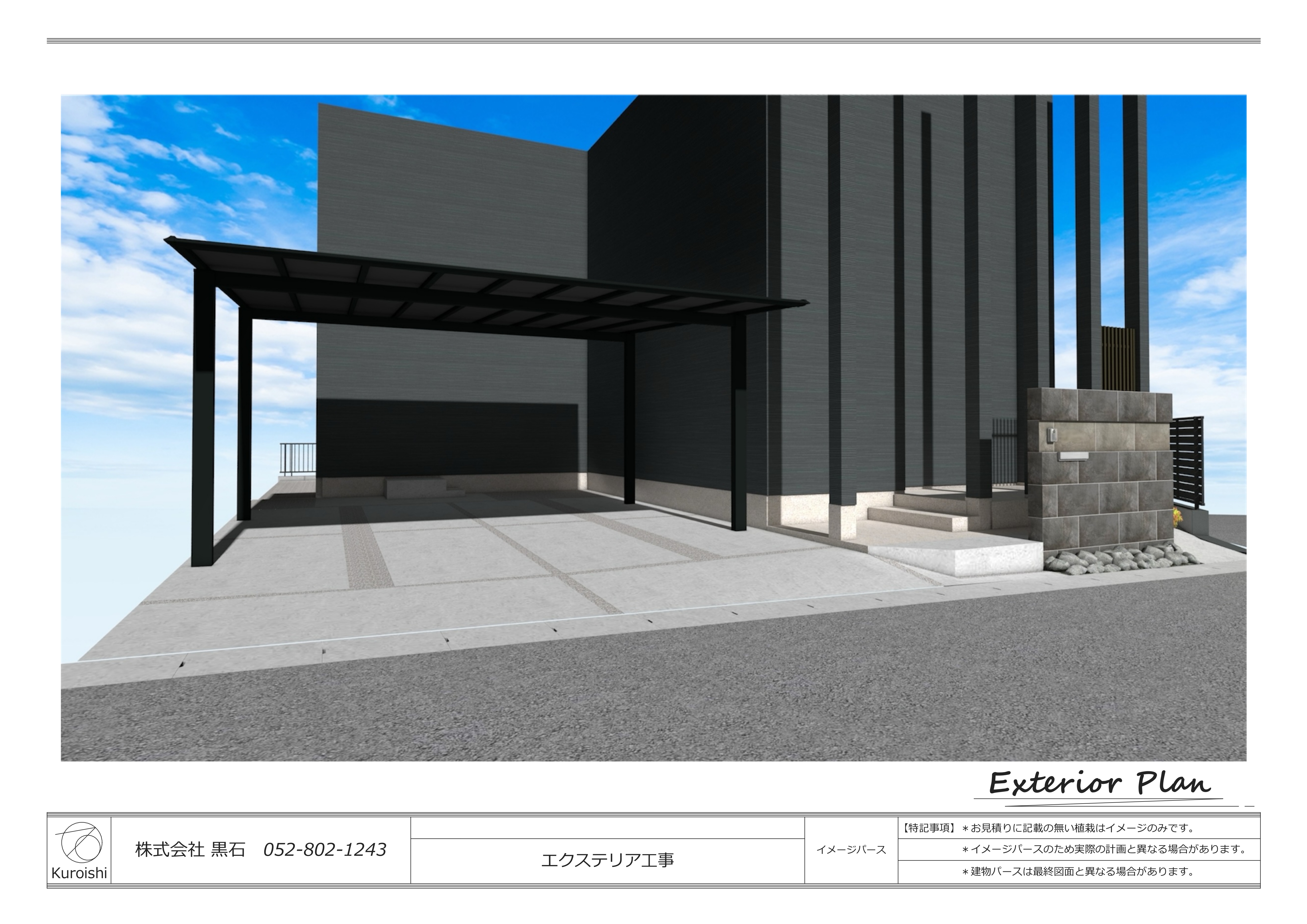 建物がモノトーンなので、外構もなるべくモノトーン調で