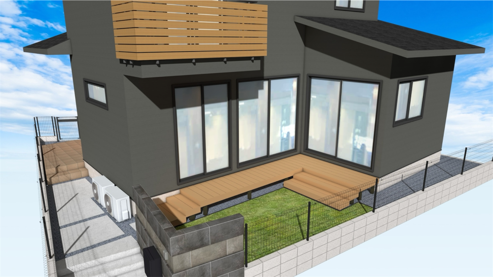 目隠しフェンスと建物屋根を似た色で提案することによって・・・ -