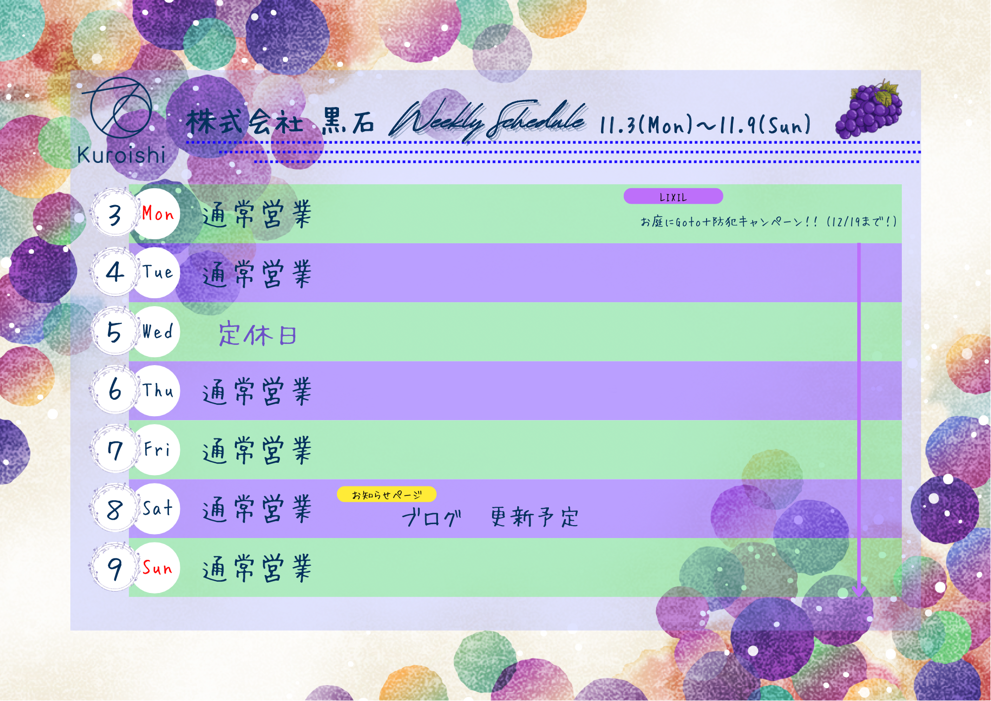 #71 来週の週間予定!【更新】 | 名古屋市の不動産・エクステリアなら株式会社黒石